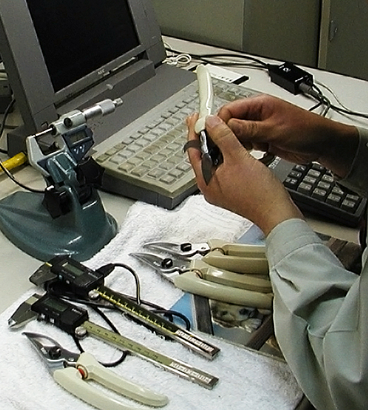 製品検査規定に基づく厳しい人的チェックで、不良品を徹底排除しています。製品の最後の微調整は、やはり人による切断テストと感覚、目視によるものです。